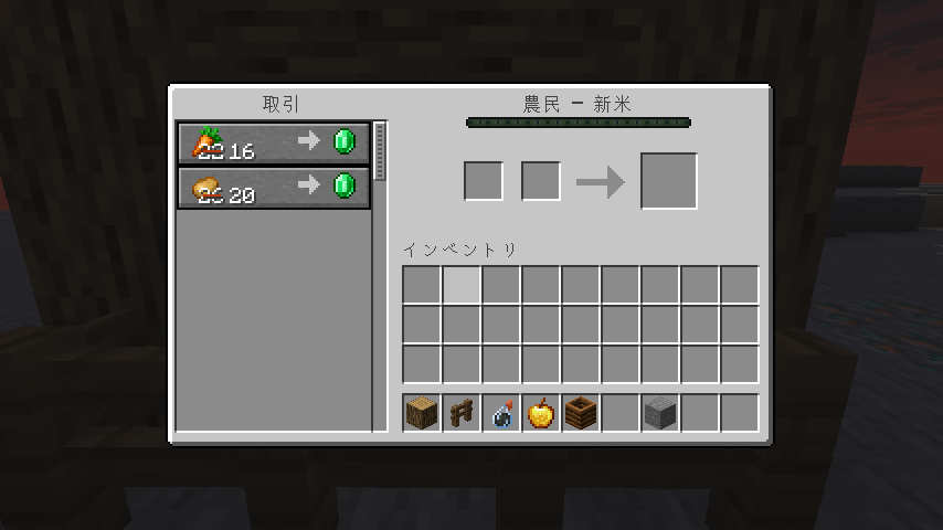 ゾンビ治療が完了した村人は、取引価格が割引となります。割引が適用されると、本来の数字に赤線が引かれ、新しい取引価格が表示されます。