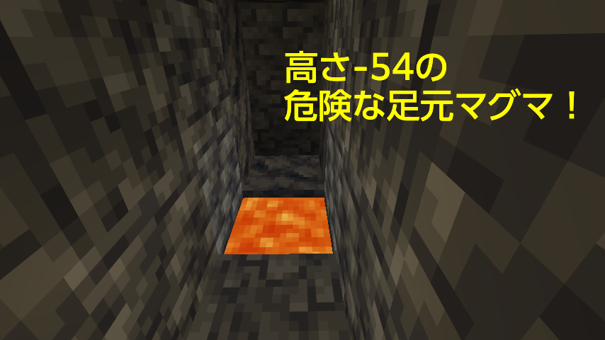 筆者が実際に、高さ-54でブランチマイニングをしていたときの光景が以下の画像です。ブランチマイニングに集中していると、うっかり落ちてしまうこともあるでしょう。