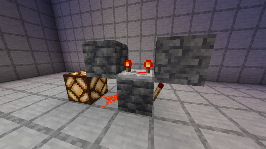 続いては、レッドストーントーチやレッドストーンリピーターを使ったクロック回路です。コンパクトかつリピーターを使って多少の遅延を調整できるのがいいところです。