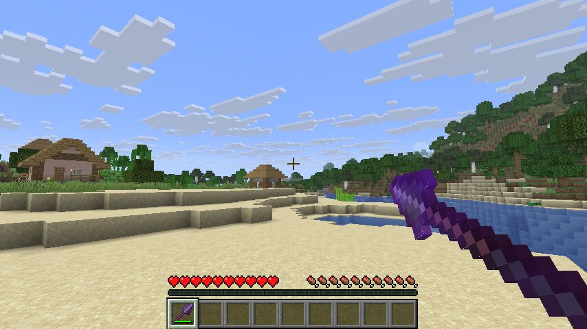 以前までの仕様では、使うと槍の耐久値を大きく消費し、移動に使うエンチャントとしては使い勝手がいいとは言えなかったのですが、満腹度を消費する形に変更されました。