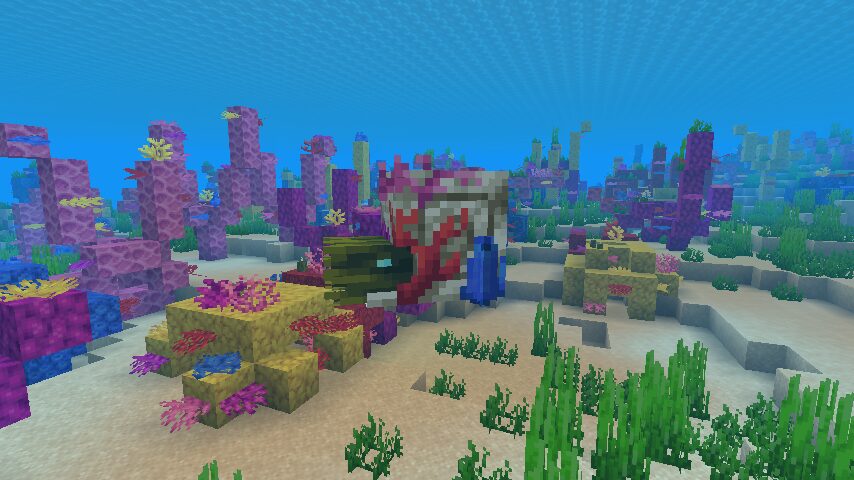 暖かい海バイオームでは、サンゴの模様を殻につけたゾンビオウムガイがスポーンします。