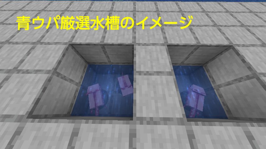 まず、青ウパと適当なウーパールーパーを繁殖させます。このとき、2分の1以上の確率で青ウパが産まれます。
