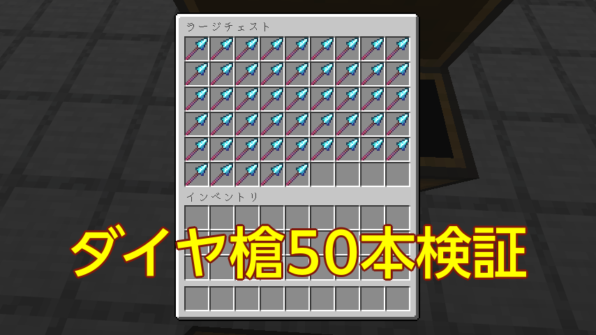 マインクラフト(マイクラ)でダイヤモンドの槍にエンチャントをするとき、エンチャントテーブルを使って付くエンチャントの確率を、50本のダイヤモンドの槍で実際に検証しました。